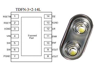 邏輯控制簡單,只需要兩個GIPO即可;如果要調節手電筒亮度的話,使用PWM信號控制ENM腳即可實現 ;